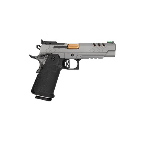 Kimber has reached the summit of high capacity 1911 design. The 2K11 is the most capable, out-of-the-box, high-capacity 1911 variant available. From hammer to muzzle, the 2K11 has been built around all the features Kimber enthusiasts requested. The anchor to this performance starts with an enhanced sub-frame shaped for superior magazine fit and control. It comes standard with an accessory rail for optional lights and lasers. The slide is made of stainless steel and features an external extractor for incredible reliability a ramped barrel aids in consistent feeding. The new MJD Designs Kevlar and carbon fiber grip deliver superior strength and echo the slide serrations found on this model. This combines to make the 2K11 a masterpiece of modern firearms design from Kimber.
