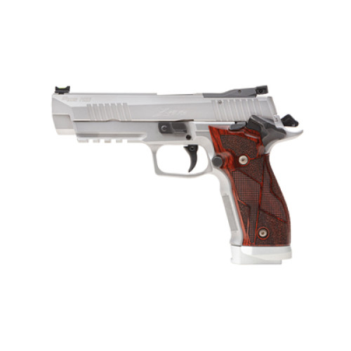 High Speed. No Drag. Only one pistol rivals the legendary P210 for accuracy and it's called the X-Five. The P226 X-Five redefines high performance with its factory tuned single-action trigger, 5" slide and barrel, ergonomic Hogue wood grips with beavertail, ambidextrous thumb safety and stainless slide and frame with magwell.